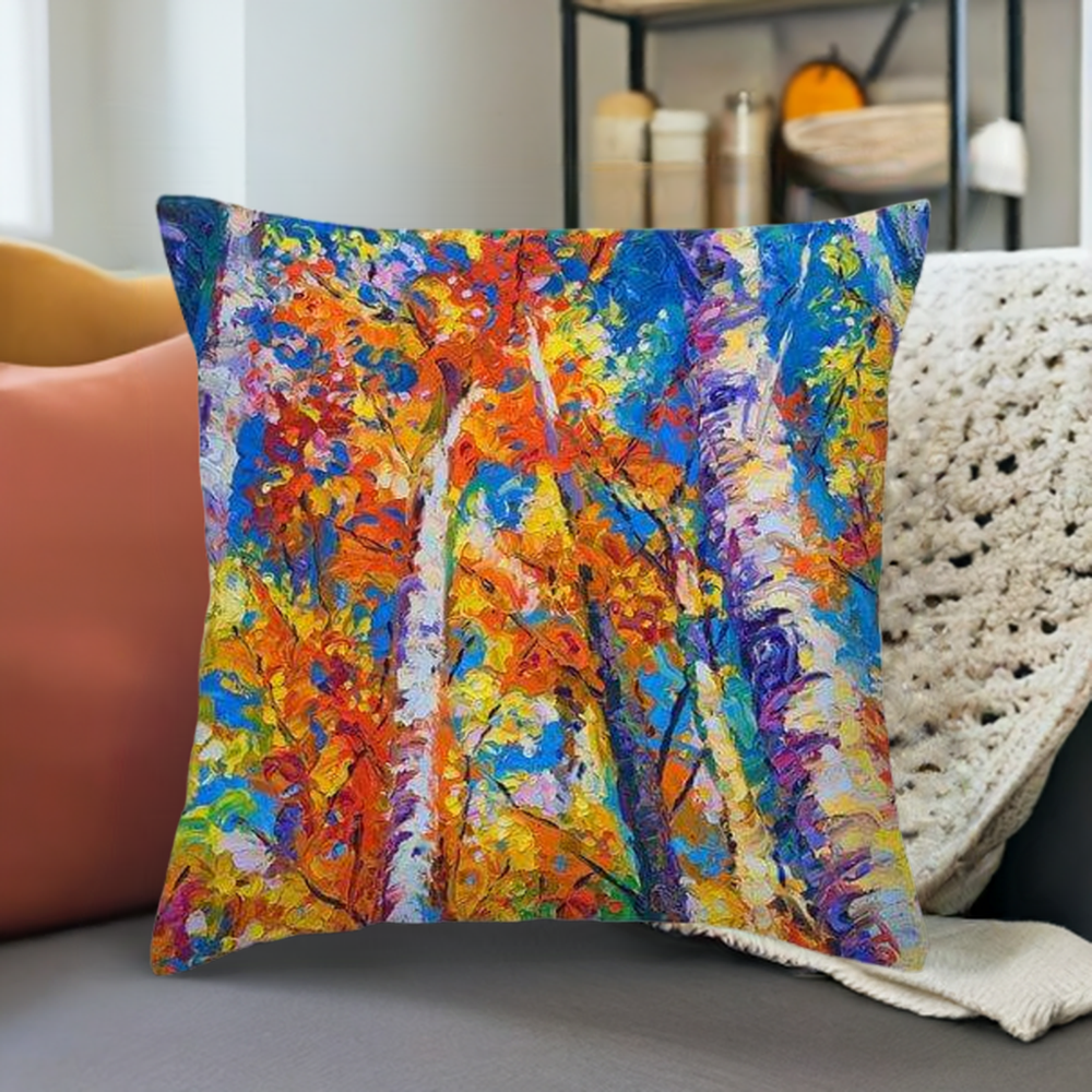 Tali’s artistic throw pillows add comfort and style to any room. Modern impressionist painting colors come alive on the poplin cover fabric, and the insert made entirely of spun polyester stays soft and fluffy. Pillows are available in sizes from 14" x 14" up to 26" x 26". They make wonderful decorative additions to your living room sofa. Your guests and pets will enjoy the additional comfy support. The pillows are also cozy additions to any contemporary or traditional bedroom decor. They are especially inviting stacked high on your bed. Choose any of Tali’s original oil paintings to be printed on both sides. As a bonus, a concealed zipper with insert (if selected) is included for convenient cleaning.